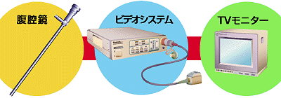 腹腔鏡は、細長い形をしていて、ビデオシステムを通じて、TVモニターにつながっています。